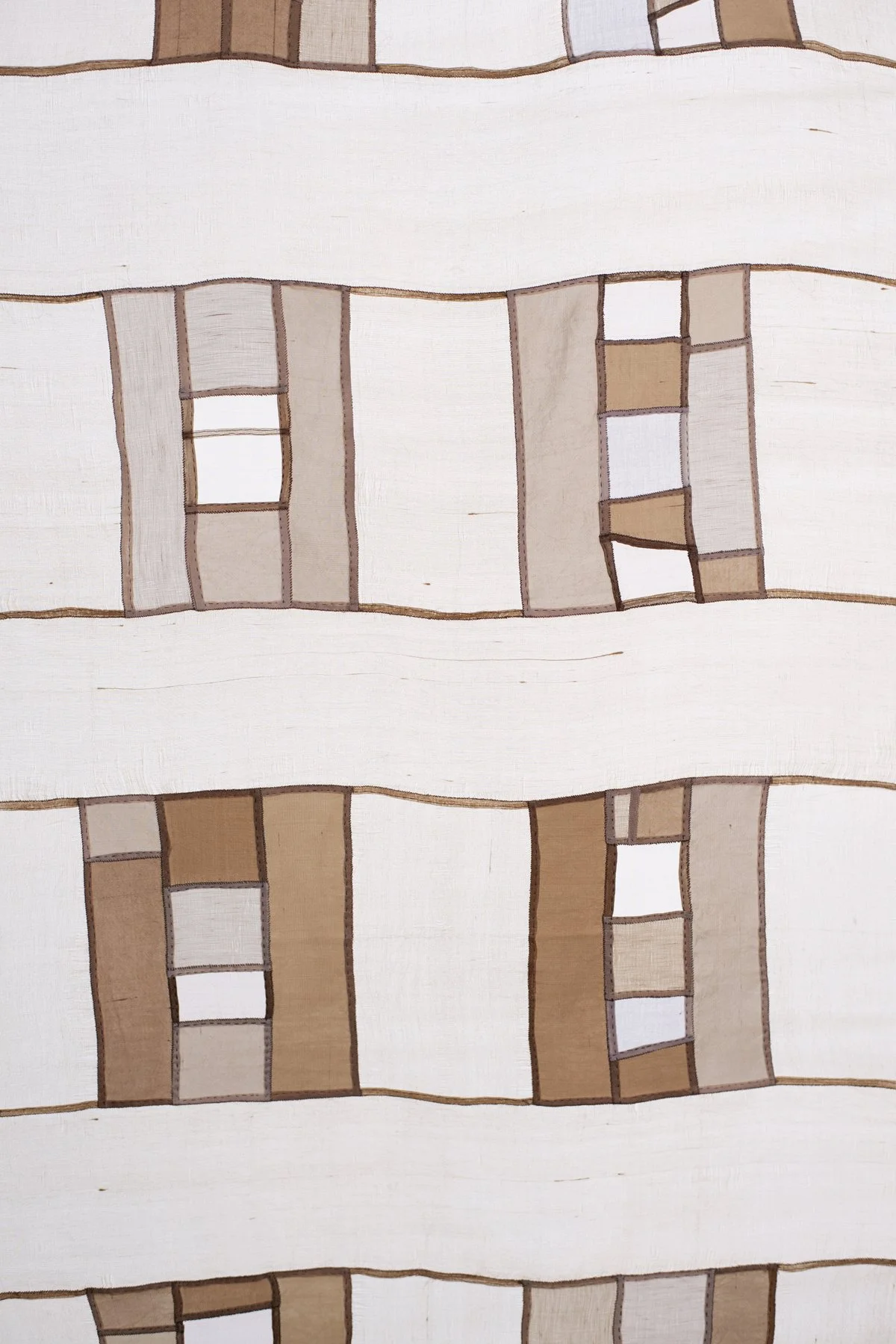 Rooted in function, bojagi provides Lee with a framework for exploring inheritance, devotion, and mastery. The works are hand stitched from recycled and scrap materials, assembled through an intuitive, improvised process rather than a fixed pattern. For Lee, each stitch is a way of grounding the mind and placing wishes into the work, allowing intention and love to accumulate over time. Through this sustained attention, the pieced cloth is sanctified.